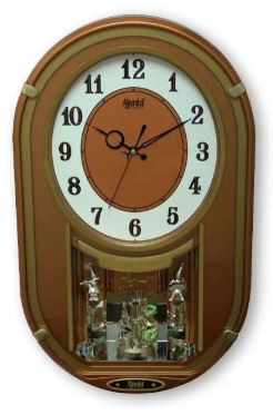 Type: Pendulum wall clock with a decorative musical/motion display.